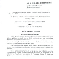 Loi N° 2012-42 du 28 Décembre 2012 portant loi de finances pour la gestion 2013.