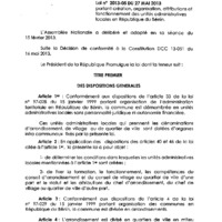 Loi N° 2013-05 du 27 mai 2013 portant création, organisation, attributions, et fonctionnement des unités administratives locales en République du Bénin.