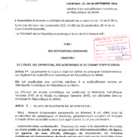 Loi N° 2014-22 du 30 septembre 2014 relative à la radiodiffusion numérique en République du Bénin.