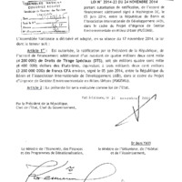 - Loi N° 2014-23 du 24 novembre 2014 portant autorisation de ratification, de l'accord de financement additionnel signé à Washington DC le 05 juin 2014 entre la République du Bénin et l'Association Internationale de Développement (AID), dans le cadre du Projet d'Urgence de Gestion Environnementale en Milieu Urbain (PUGEMU).