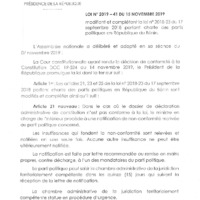 - Loi N° 2019-41 du 15 novembre 2019 modifiant et complétant la loi n° 2018-23 du 17 septembre 2018 portant charte des partis politiques en République du Bénin