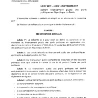 Loi N° 2019-44 du 15 novembre 2019 portant financement public des partis politiques en République du Bénin