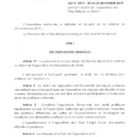 Loi N° 2019-45 du 25 novembre 2019 portant statut de l'opposition en République du Bénin
