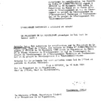 - Loi N°91-001 bis du 16 août 1991 autorisant la ratification des Accords de prêts N° F/BEN/TEL/90/22 signés à Abidjan le 30 novembre 1990 entre la République du Bénin et le Fonds Africain de Développement en vue du financement du projet de Développement de l'Enseignement Technique et Professionnel et du projet de Développement des Télécommunications
