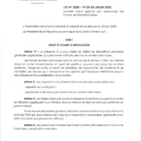 - Loi N°2020-19 du 03 juillet 2020 portant statut spécial des personnels des Forces armées béninoises.