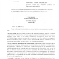 - Loi N°2020-26 du 29 septembre 2020 portant code des marchés publics en République du Bénin.