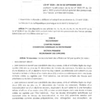 - Loi N°2020-28 du 02 septembre 2020 portant modification de la loi n°2020-19 du 03 juillet 2020 portant statut spécial des personnels des Forces armées béninoises.
