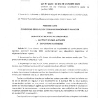 - Loi N°2020-30 du 28 octobre 2020 portant loi de finances rectificative pour la gestion 2020.