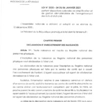 - Loi N°2020-34 du 06 janvier 2021 portant dispositions spéciales de simplification et de gestion dématérialisée de l'enregistrement des faits d'état civil.