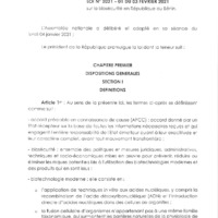 Loi N°2021-01 du 03 février 2021 sur la biosécurité en République du Bénin.