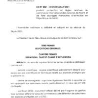 - Loi N°2021-04 du 08 juillet 2021 portant protection et règles relatives au commerce international des espèces de faune et de la flore sauvages menacées d’extinction en République du Bénin