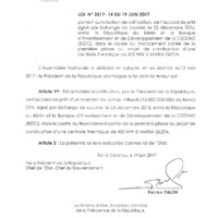 - Loi n° 2017-14 du 19 juin 2017 portant autorisation de ratification, de l'accord de prêt signé par échange de courrier, le 23 décembre 2016 entre la République du Bénin et la Banque d'Investissement et de Développement de la CEDEAO (BIDC) dans le cadre du financement partiel de la première phase du projet de construction d'une Centrale thermique de 400 MW à MARIA GLETA