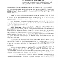 Loi N°2021-13 du 20 Décembre 2021 modifiant et complétant la loi N°2002-07 du 24 Août 2004 portant code des personnes et de la famille