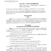 Loi N°2021-14 du 20 Décembre 2021 portant code de l’administration territoriale en République du Bénin
