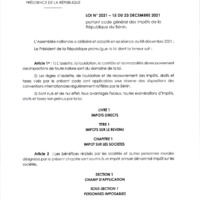 Loi N°2021-15 du 23 Décembre 2021 portant Code Général des Impôts de la République du Bénin