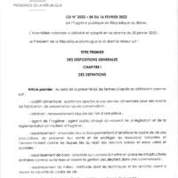 Loi N°2022-04 du 16 Février 2022 sur l'hygiène publique en République du Bénin