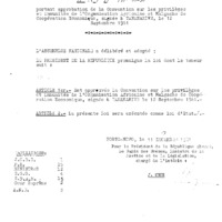 - Loi N°61-50 du 11 Décembre 1961 portant approbation de la convention sur les privilèges et immunités de l’Organisation Africaine et Malgache de Coopération Economique, signée à TANANARIVE, le 12 septembre 1961