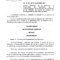 - Loi n° 2017-39 du 26 Décembre 2017 portant interdiction de la production, de l'importation, de l'exportation, de la commercialisation, de la détention, de la distribution et de l'utilisation de sachets en plastique non biodégradables en République du Bénin.