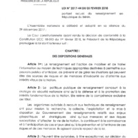 Loi n° 2017-44 du 05 Février 2018 portant recueil du renseignement en République du Bénin