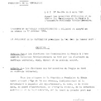 Loi N°84-004 du 8 mars 1984 fixant les modalités d’élection et le nombre des commissaires du peuple à l’Assemblée nationale révolutionnaire