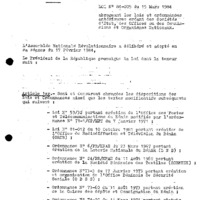 - Loi N°84-005 du 15 mars 1984 abrogeant les lois et ordonnances antérieurs créant des sociétés d’Etat, des offices ou des commissions et organismes nationaux
