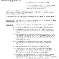 Loi N°86-004 du 26 février 1986 Portant modification de la loi N°81-003 du 23 mars 1981 relative au conseil national de la comptabilité
