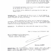 - Loi N°86-006 du 26 février 1986 portant approbation de la décision-loi N°85-001/ANR/CP du 12 juillet 1985 créant la commission nationale permanente d’enquête de sécurité d’Etat