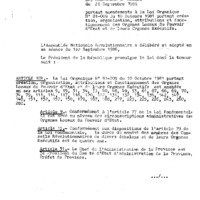 - Loi N°86-020 du 26 septembre 1986 portant amendements à la loi organique N°81-009 du 10 octobre 1981 portant création, organisation, attributions et fonctionnement des organes locaux du pouvoir d’Etat et de leurs organes exécutifs