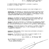 Loi N°87-002 du 27 février 1987 portant programme national de production et d’investissement pour l’année 1987