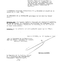 - Loi N°87-010 du 21 septembre 1987 portant habilitation du conseil exécutif national à modifier, en cas de besoin, la compétence territoriale des tribunaux populaires et des parquets populaires de province