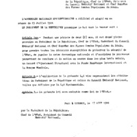 - Loi N°88-010 du 17 août 1988 accordant les pleins pouvoir au Président de la République, Chef de l’Etat, Président du conseil exécutif national et Chef suprême des forces armées populaires du Bénin