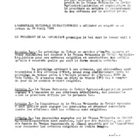 - Loi N°89-011 du 12 mai 1989 portant création d’un privilège au profit de la caisse nationale de crédit agricole, liquidation et organisation de la procédure en matière de recouvrement de ses créances sur le secteur privé