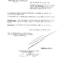 - Loi N°89-017 du 12 mai 1989 portant approbation de la décision-loi N°88-003/ANR/CP du 28 juillet 1988 fixant les fêtes légales en République Populaire du Bénin