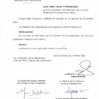 Loi N°2024-04 du 1er février 2024 portant autorisation de ratification de l’accord établissant l’Alliance Smart Africa