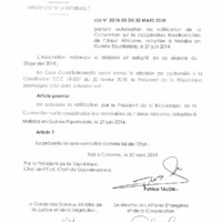 - Loi n° 2018-05 du 30 mars 2018 portant autorisation de ratification de la Convention sur la Coopération Transfrontière de l'Union Africaine, adoptée à Malabo, en Guinée Equatoriale, le 27 juin 2014