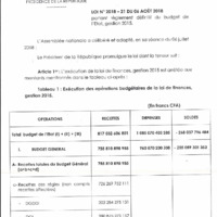Loi n° 2018-21 du 06 août 2018 portant règlement définitif du budget de l'Etat, gestion 2015.