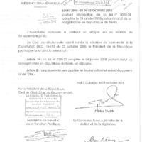 - Loi n° 2018-33 du 05 octobre 2018 portant abrogation de la Loi n° 2018-01 adoptée le 04 janvier 2018 portant statut des magistrats en République du Bénin