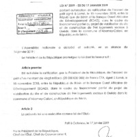 - Loi n° 2019-03 du 17 janvier 2019 portant autorisation de ratification de l'accord de prêt signé à Lomé, le 15 novembre 2018, entre la République du Bénin et la Banque Ouest Africaine de Développement (BOAD), dans le cadre du financement partiel du projet de viabilisation du site et de construction de 944 logements sociaux et économiques à Ouèdo dans la commune d'Abomey-Calavi en République du Bénin