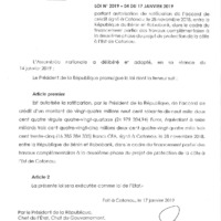 - Loi n° 2019-04 du 17 janvier 2019 portant autorisation de ratification de l'accord de crédit signé le 28 novembre 2018 entre la République du Bénin et Rabobank, dans le cadre du financement partiel des travaux complémentaires à la deuxième phase du projet de protection de la côte à l'Est de Cotonou