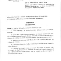 - Loi n° 2016-10 du 08 juillet 2016 portant loi uniforme relative au traitement des comptes dormants dans les livres des organismes financiers en République du Bénin.