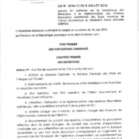 - Loi n° 2016-11 du 08 juillet 2016 portant loi uniforme sur le contentieux des infractions à la réglementation des relations financières extérieures des Etats membres de l'Union Economique et Monétaire Ouest Africaine (UEMOA)
