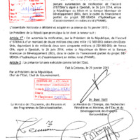 - Loi n° 2015-03 du 29 janvier 2015 portant autorisation de ratification de l'accord d'ISTISNA'A signé à Djeddah le 26 juin 2014 entre la République du Bénin et la Banque Islamique de Développement (BID) dans le cadre du financement partiel du projet BID-UEMOA d'hydraulique et d'assainissement en milieu rural (PHAMR)