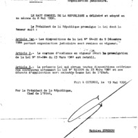 - Loi n° 90-003 du 15 mai 1990 portant remise en vigueur de la loi n° 64-28 du 9 décembre 1964 portant organisation judiciaire.