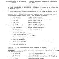 Loi n° 90-019 du 27 juillet 1990 fixant les fêtes légales en République du Bénin