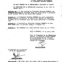Loi n° 91-013 du 12 avril 1991 portant immunité personnelle du Président KEREKOU