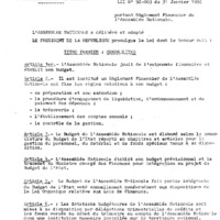 Loi n° 92-003 du 31 janvier 1992 portant Règlement Financier de l’Assemblée Nationale