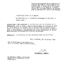 - Loi n° 92-012 du 13 juillet 1992 portant autorisation de ratification de l’Accord de Prêt n° 545 - P signé le 25 Octobre 1991 à Vienne et le Fonds OPEP pour un montant de 7.000.000 Dollars