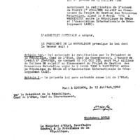 - Loi n° 92-016 du 13 juillet 1992 autorisant la ratification de l’Accord de Crédit n° 2344/ BEN relatif au financement du Projet de Gestion des Ressources Naturelles, signé le 09 Avril 1992 à Washington entre la République du Bénin et l ’Association Internationale de Développement (AID)