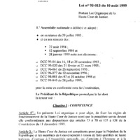 Loi n° 93-013 du 10 août 1999 portant Loi Organique de la Haute Cour de Justice.