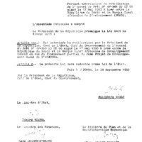- Loi n° 93-017 du 28 septembre 1993 portant autorisation de ratification de l’Accord de prêt n° AP-BEN 93/06/00 signé le 17 Mai 1993 à Lomé entre la République du Bénin et la Banque Ouest Africaine de Développement (BOAD).